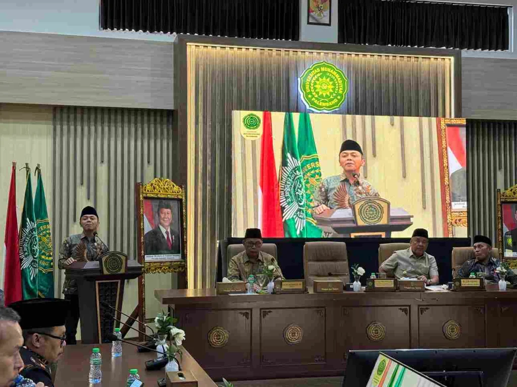 Wakil Menteri Pendidikan Dasar dan Menengah (Wamendikdasmen) Dr. Fajar Riza Ul Haq, menyampaikan tausiyah kebangsaan dalam acara Halalbihalal Civitas Akademika Universitas Muhammadiyah Palembang, pada Selasa (15/4/2025).